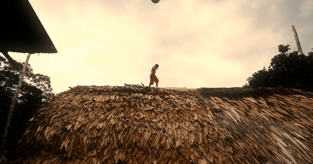 Hay un testimonio que fue parte de estas conversaciones, no sé si decir tensas, pero como un debate profundo en el que finalmente también cedí a los editores. Es justamente la primera intromisión de la voz en off, en la que se habla de un viento lleno de moscas. Eso es un testimonio, un sueño que me contó una de las protagonistas. A mí me parece una joya que esta mujer, que aparte le tengo un cariño enorme, me cuente este sueño – me parecía fantástico. Entonces yo quería dejarlo como testimonio: ella contando el sueño. Pero bueno, finalmente, había que darle ese peso a la voz en off, que finalmente era una idea que se tuvo desde el inicio: que haya una voz en off que represente a este espíritu de la selva. Es el espíritu de Nimpera, que es la madre Jaguar, que es protectora de la selva. Entonces se trasladó ese testimonio a la voz en off. Que realmente no me molesta pero sí fue un debate amplio. Igual yo sé que ese testimonio está y que podrá salir eventualmente – porque habrá siempre el material que queda para jugar, hacer teasers o si se quiere hacer material educativo.